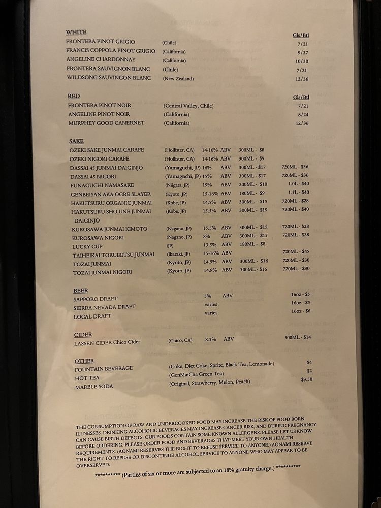Introducing the menu at Aonami Sustainable Sushi is a delightful journey into the world of Japanese cuisine that prioritizes sustainability without compromising flavor. Nestled in Chico, CA, this charming eatery captivates with its extensive vegan options, catering to plant-based sushi lovers like Amanda O., who hailed it as "vegan sushi heaven." The highlight of the menu includes their famous tempura mushrooms and thoughtfully crafted sushi rolls that keep customers returning.